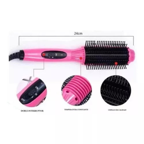 Diseñado para todo tipo de cabello, incorpora cerdas antiestáticas y un sistema que distribuye el calor de manera uniforme (si tu modelo incluye calor), lo que ayuda a mantener el cabello alineado y con un aspecto más saludable. Su funcionamiento automático facilita el peinado, haciéndolo más rápido y cómodo, ideal para uso diario o retoques en cualquier momento.